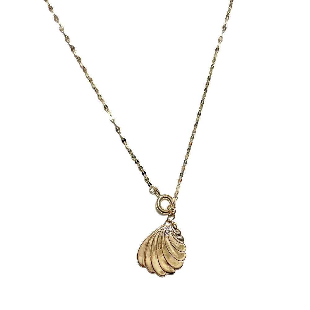 Material : 14K yellow gold Length : 41cm (approx) pendant dimensions : 14 * 15 (approx) stone : Round white sapphire
