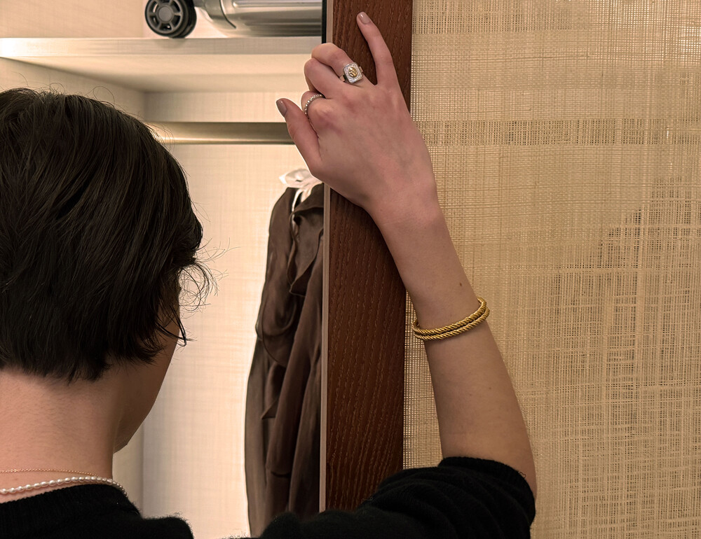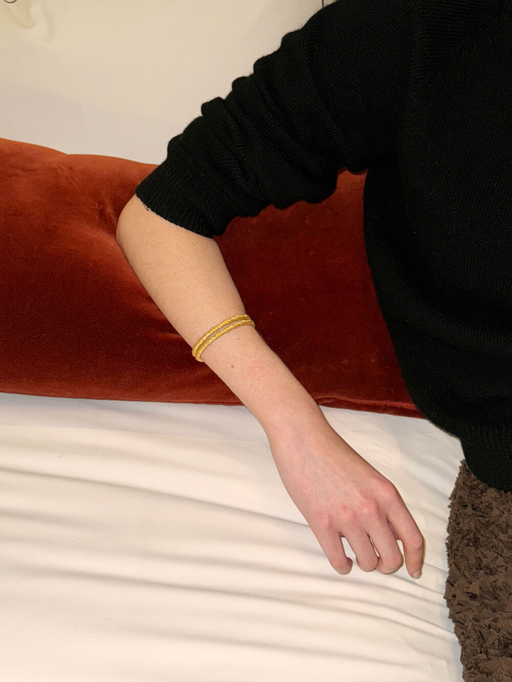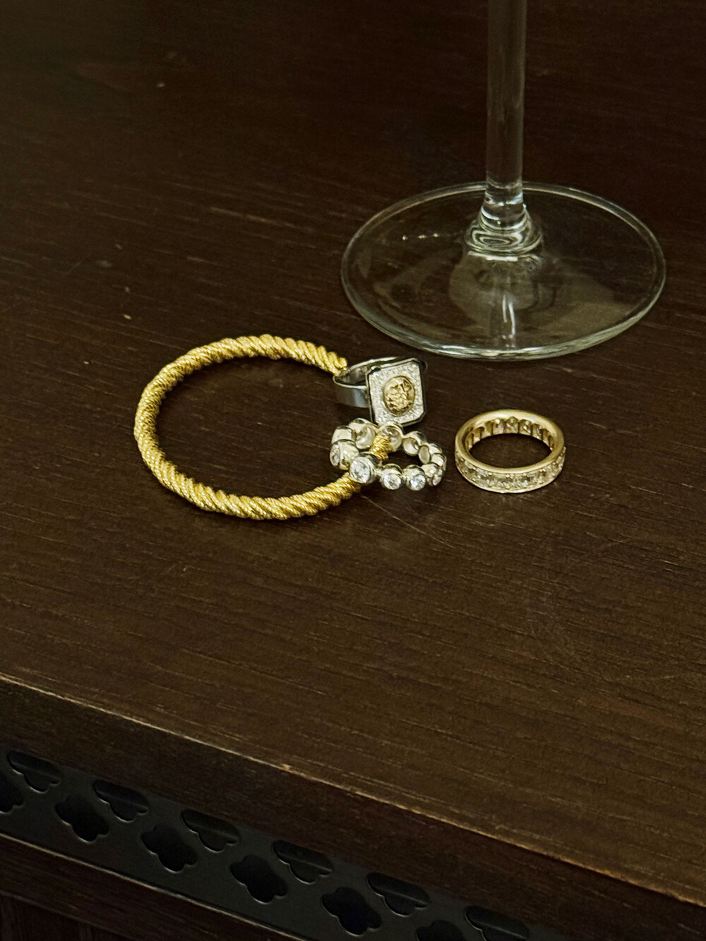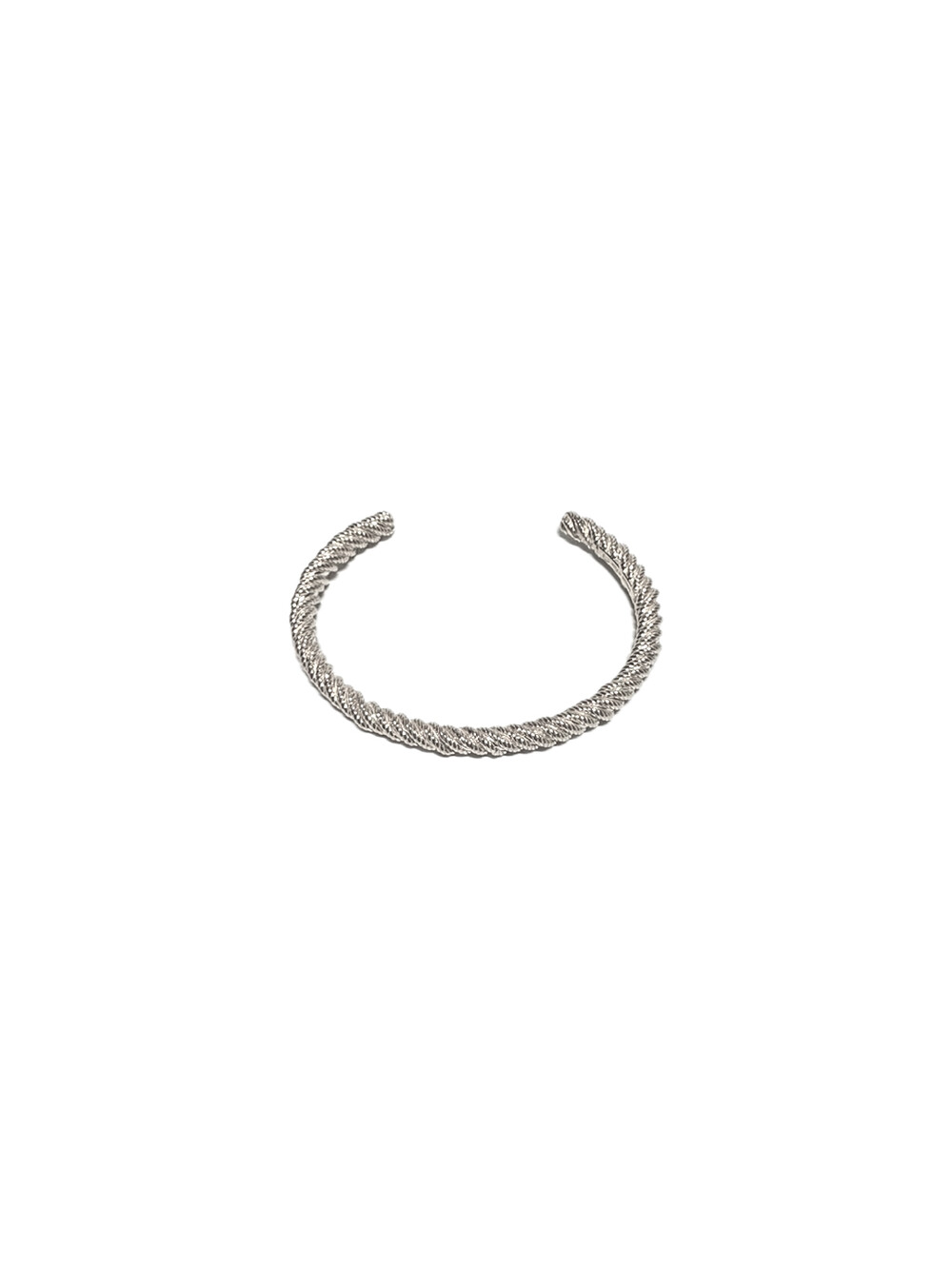 This open bangle style bracelet features a unique design resembling twisted and knotted rope. The intertwined form and natural curves create a sophisticated yet bold impression, making it a distinctive and striking statement piece.