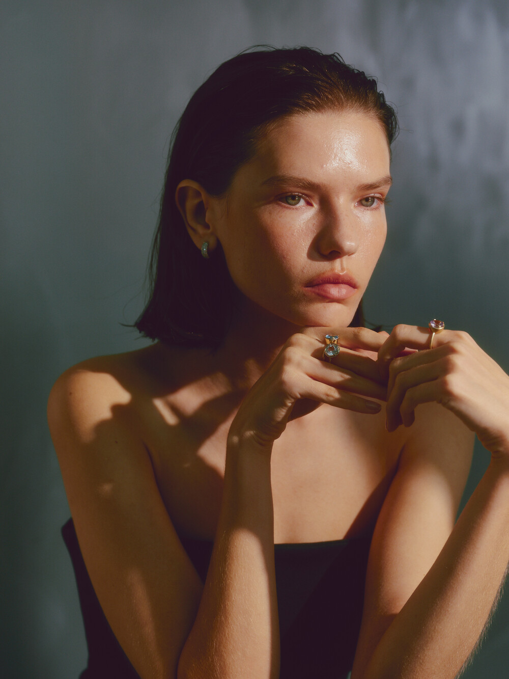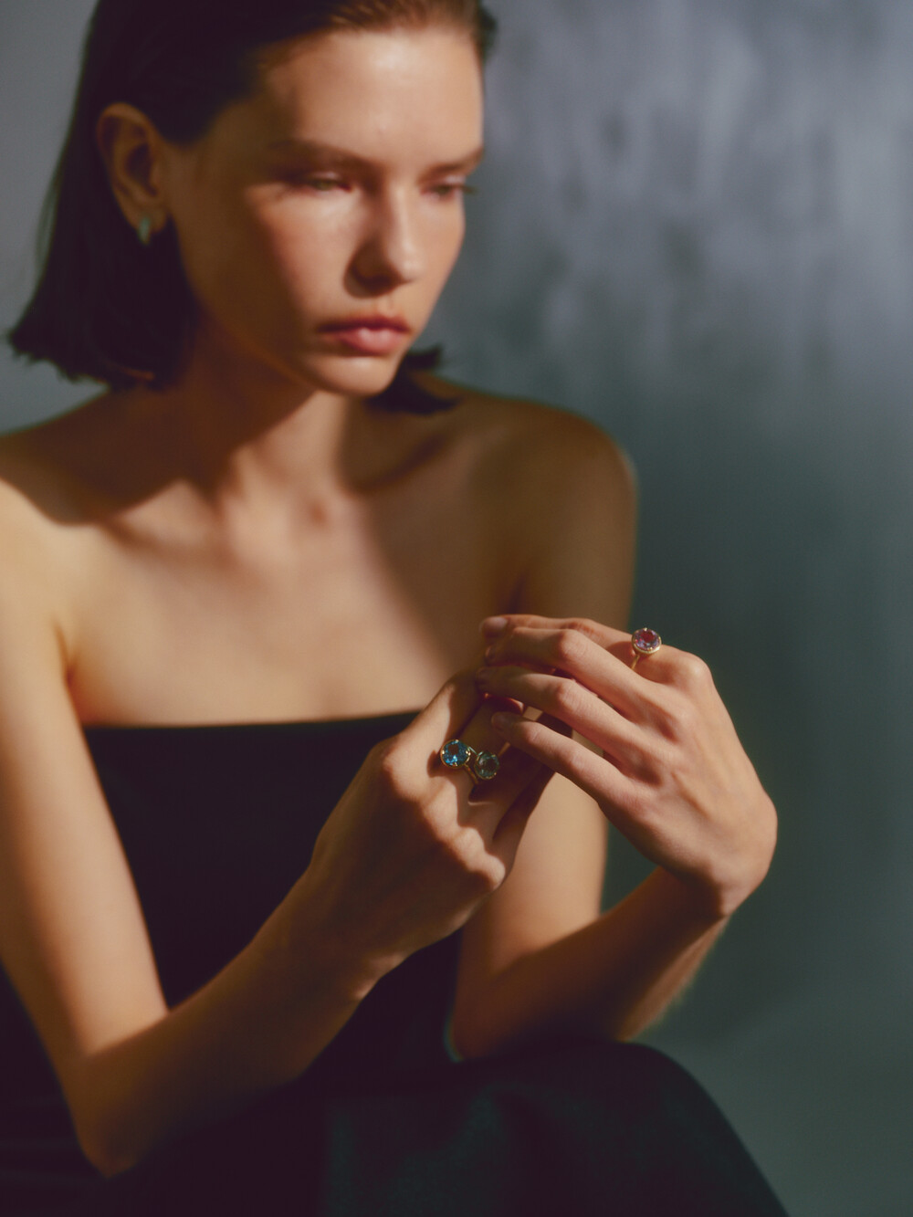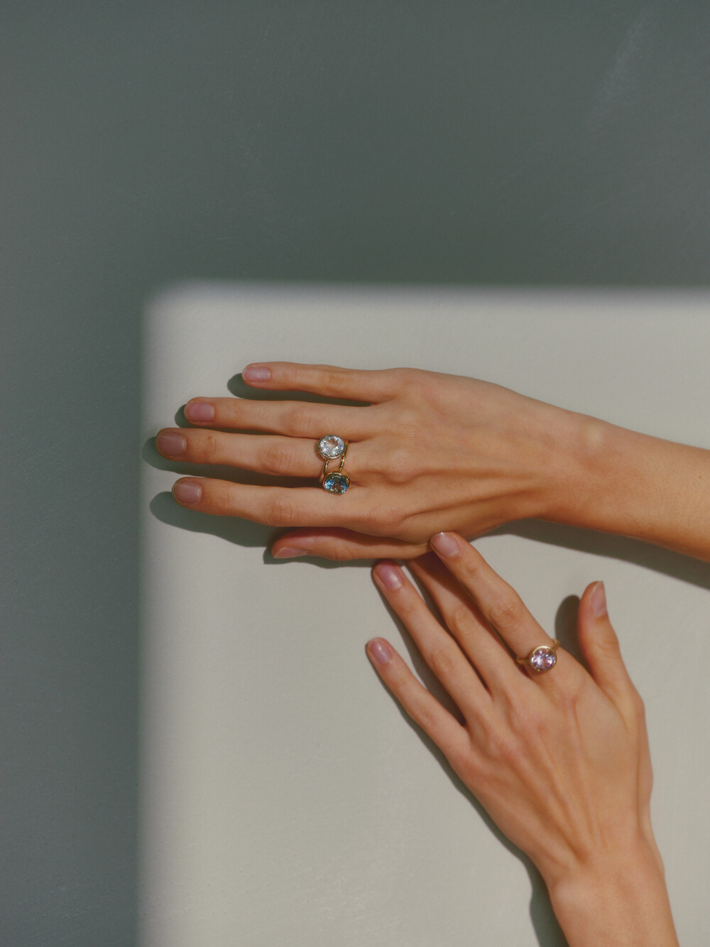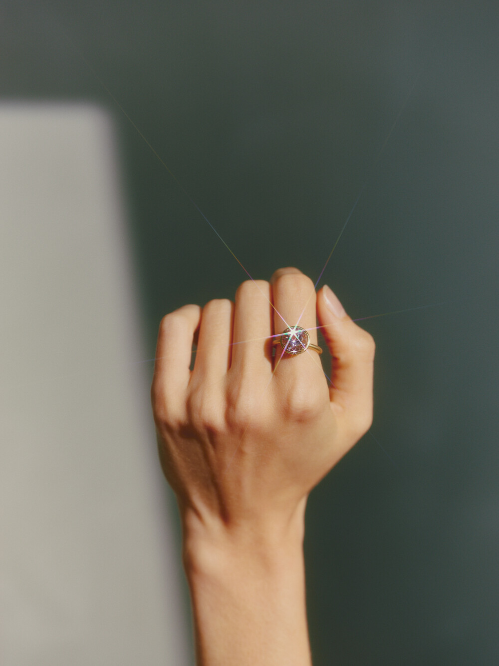 It is a ring where comfort and purity coexist. A candy-shaped round amethyst ring that evokes childhood memories.