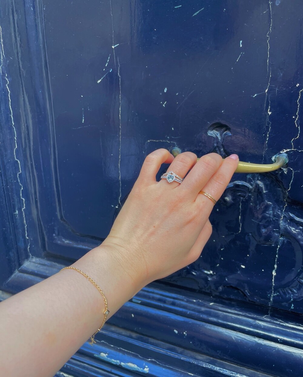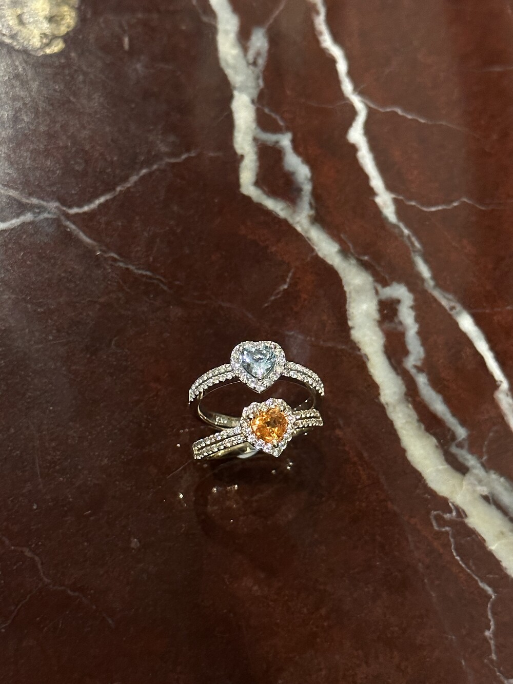 The heart cut aquamarine, with its clear and luminous glow, evokes a fresh and serene beauty. Delicately set white sapphires harmonize perfectly with the aquamarine’s tranquil hue, adding a subtle sparkle that enhances its refined elegance. The Mon Cœur aquamarine ring captures the essence of pure, timeless love, conveying a deep meaning that remains unchanged over time.