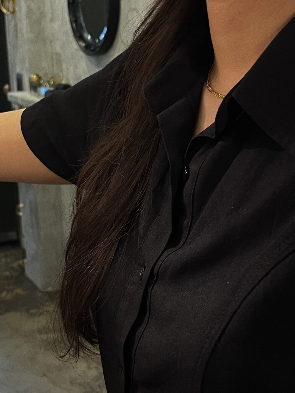 A bold necklace that leaves a striking presence with the subtle glow of gold. Its silver chain, resembling the rugged texture of a serpent, flows fluidly along the neckline with a vintage yet refined touch—perfect for adding a powerful accent to even the simplest look.