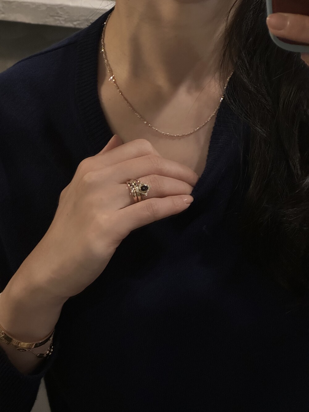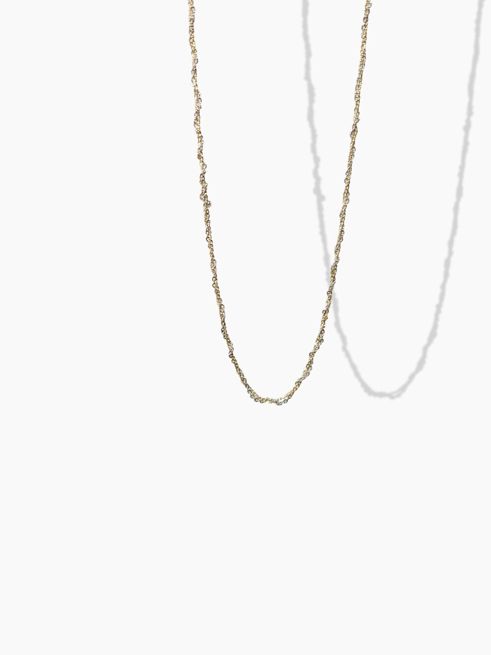This necklace is made by twisting two chains of different colors to stand out from any angle. It shows the purity of white gold and the warm color of yellow gold. It is a special necklace that has a presence even if you wear just one.