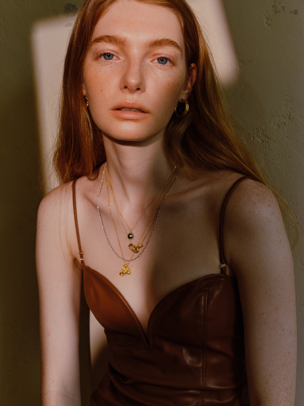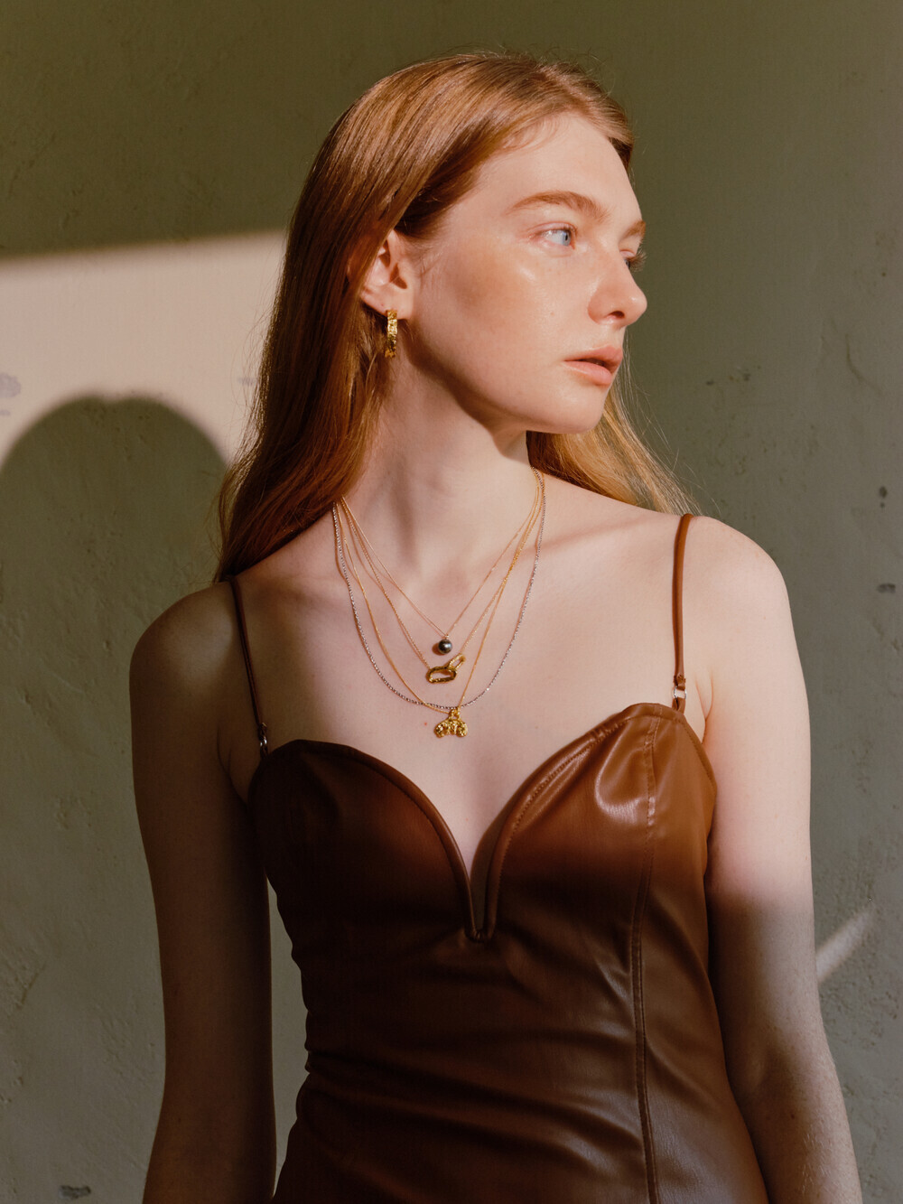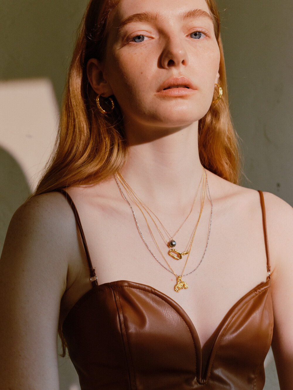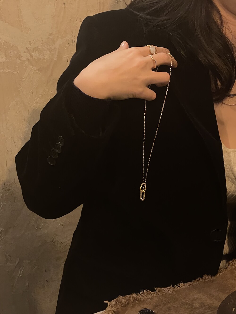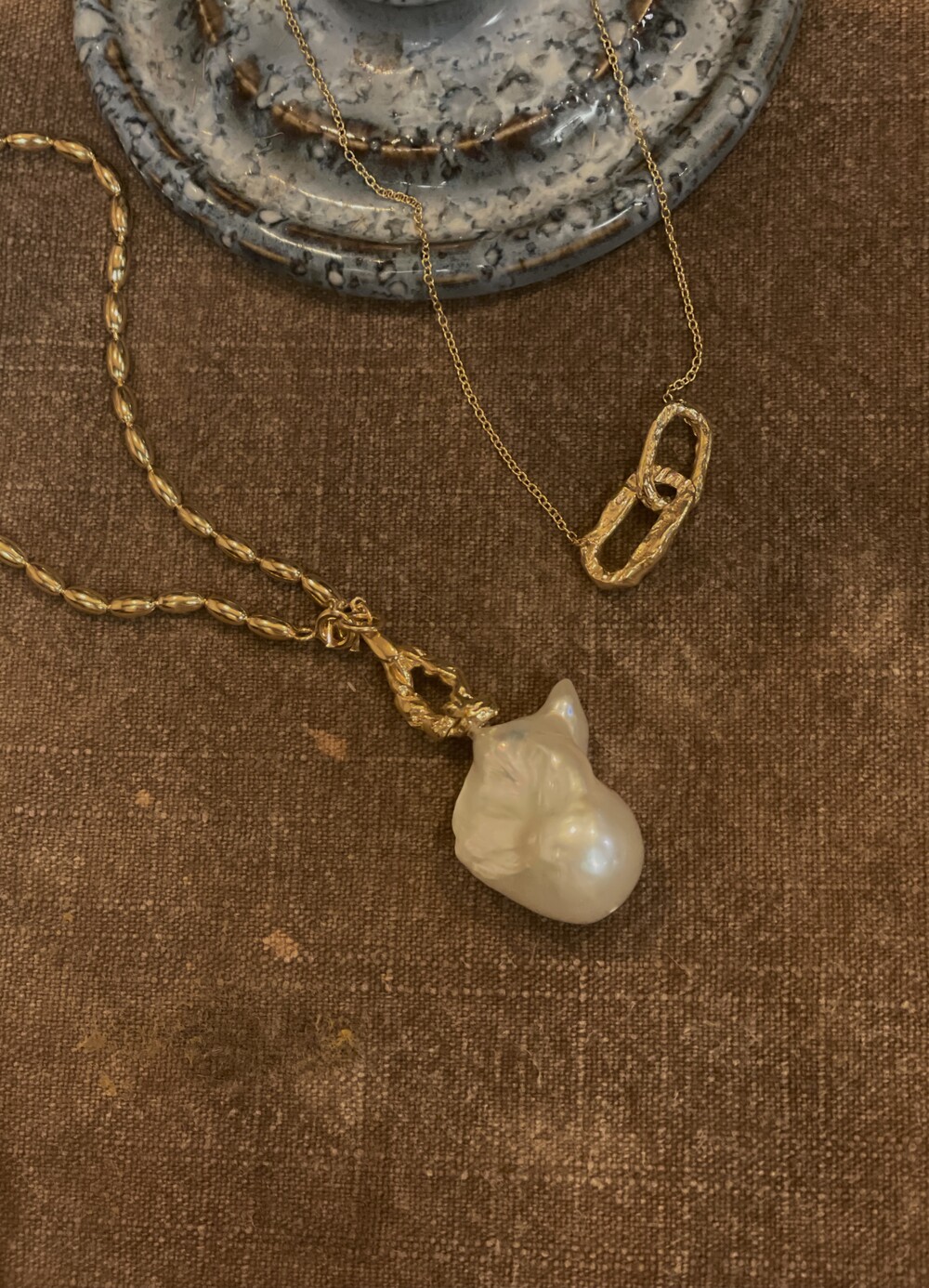 This necklace features a pendant in the form of a chain, with the chain integrated into the design.