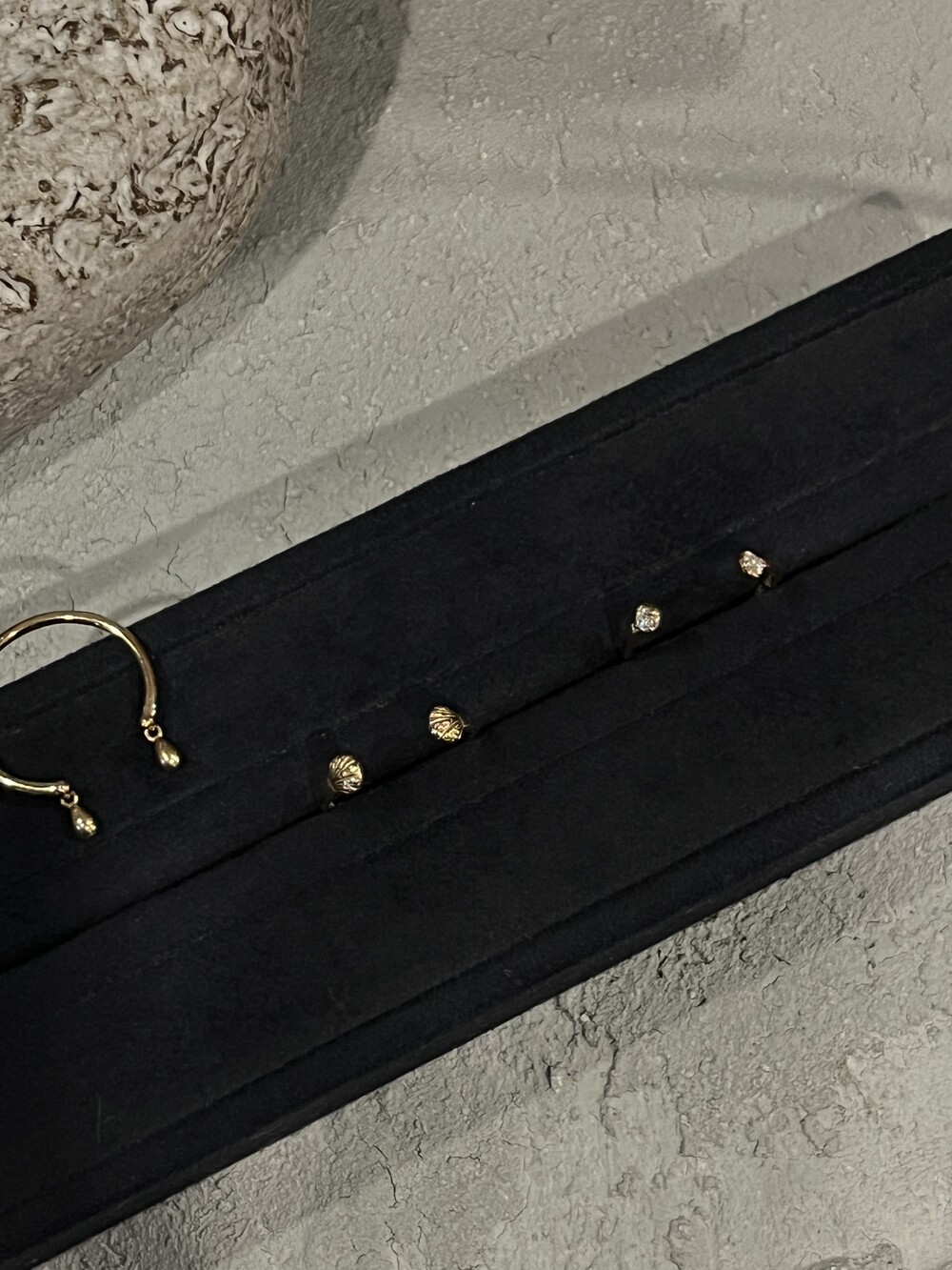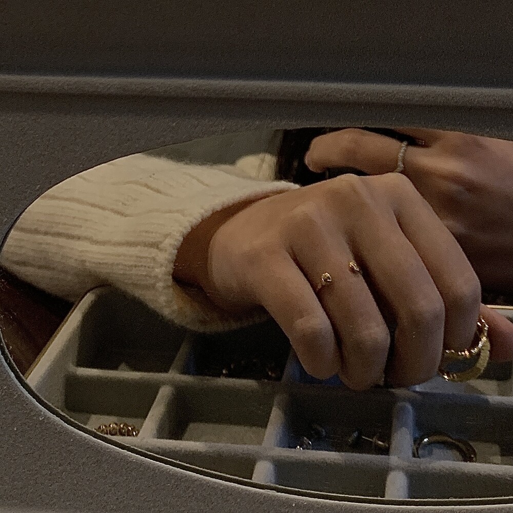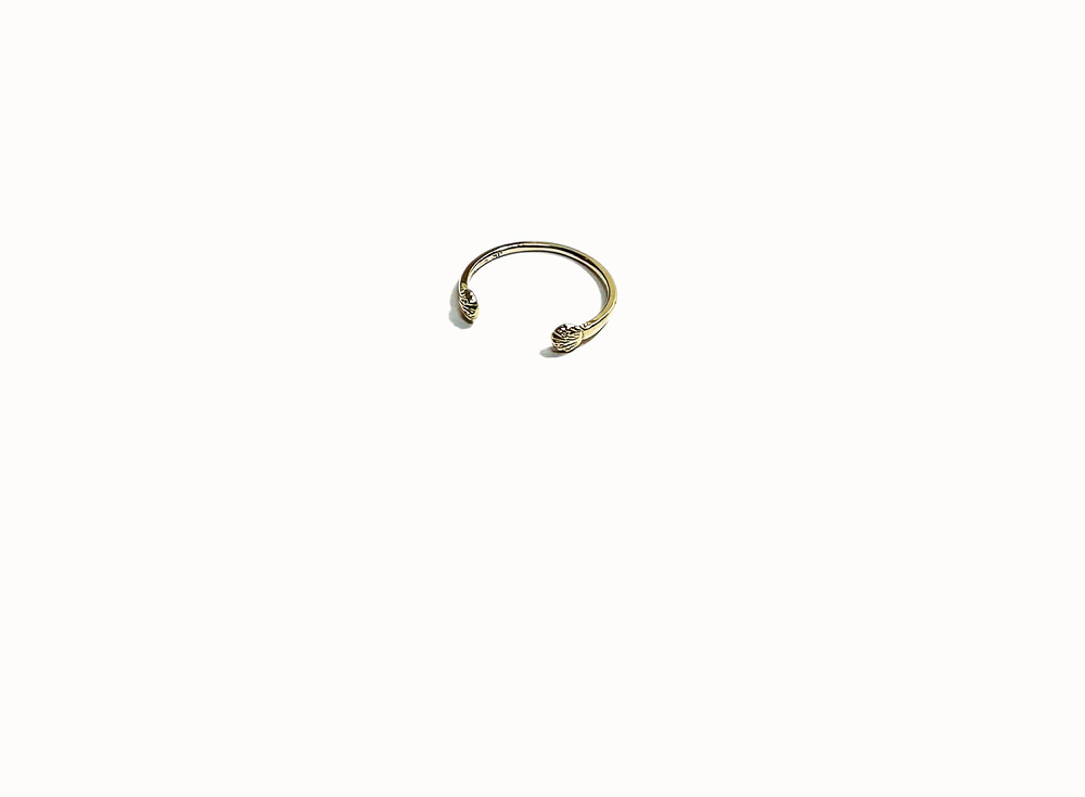 An open ring inspired by the embrace of a seashell, featuring soft, flowing curves in a warm and graceful design. Elegant enough to be worn beautifully on its own.