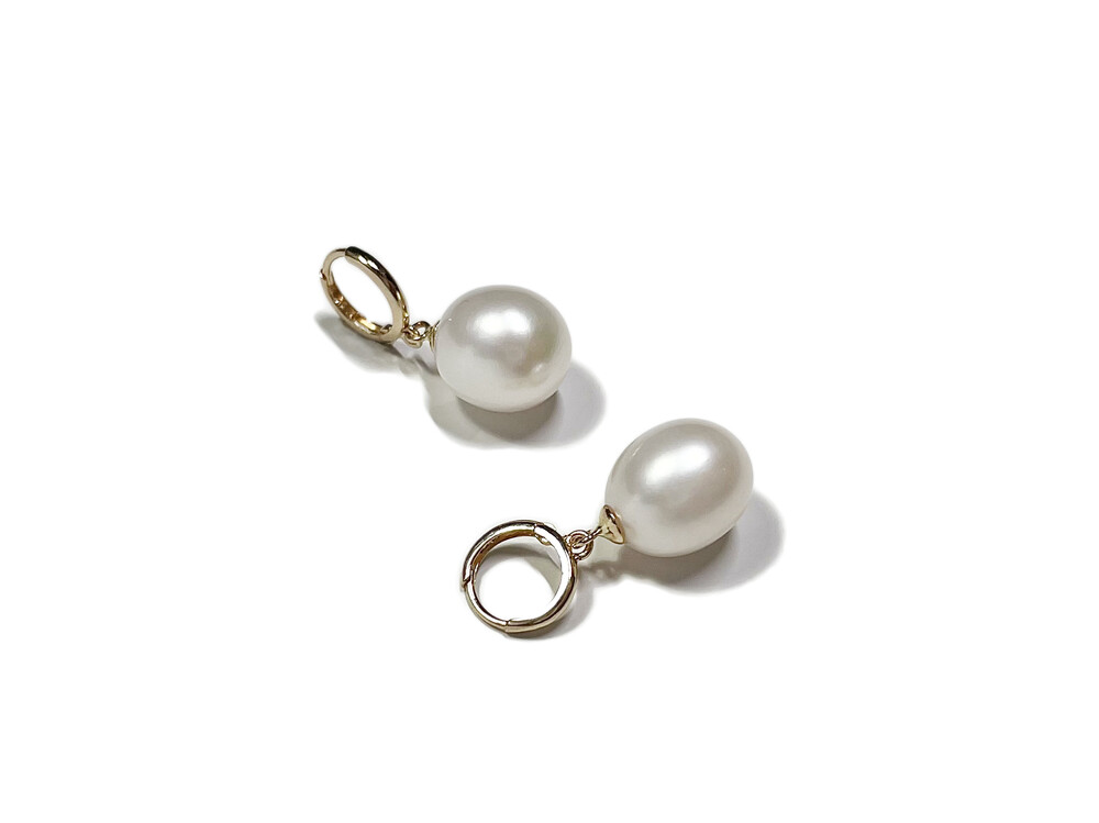 Material : 14K yellow gold Hoop dimensions : 10 * 10mm (approx) Stone : Freshwater pearl Stone dimensions : 11 * 13mm (approx)
