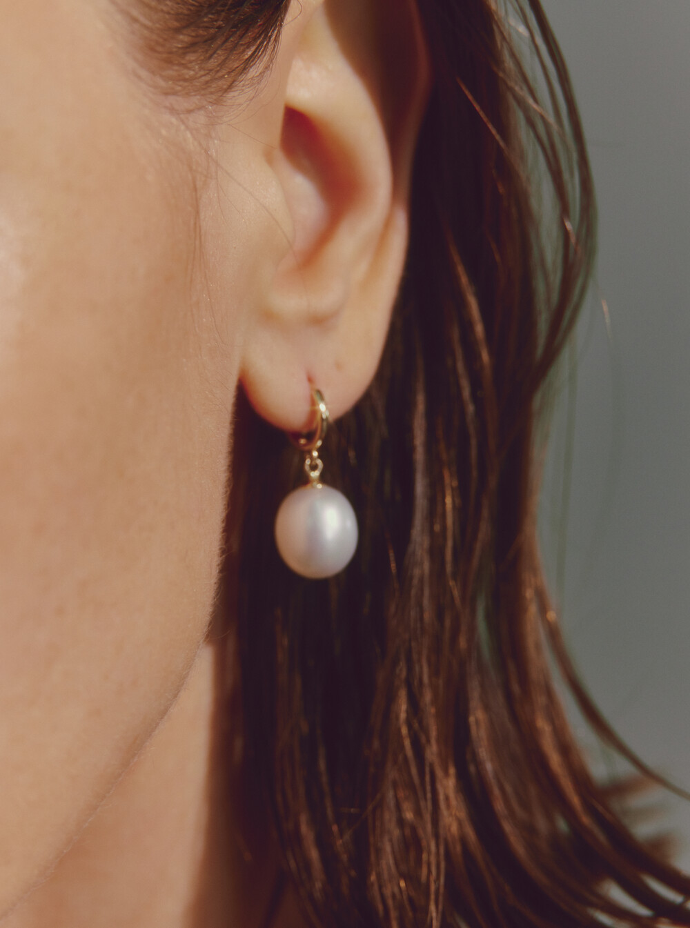 These are substantial earrings with an egg-shaped design. They feature a secure one-touch mechanism where the ring locks, allowing the pearl to drop in a dangle style.