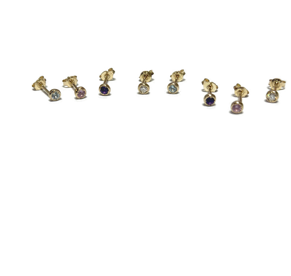 These neat earrings feature a design reminiscent of small, cute pebbles. You can choose stones in your preferred color, and they look stylish when worn in multiple colors together. They make a sophisticated statement when worn alone in the main ear hole and are also great for layering in second or additional ear holes.