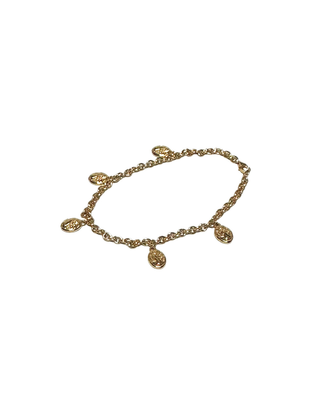 This bracelet features a charming vintage inspired mood with oval shaped pendants depicting a woman’s silhouette. Its unique design draws attention, while the intricate details add a refined touch, making it a standout piece that complements any style.