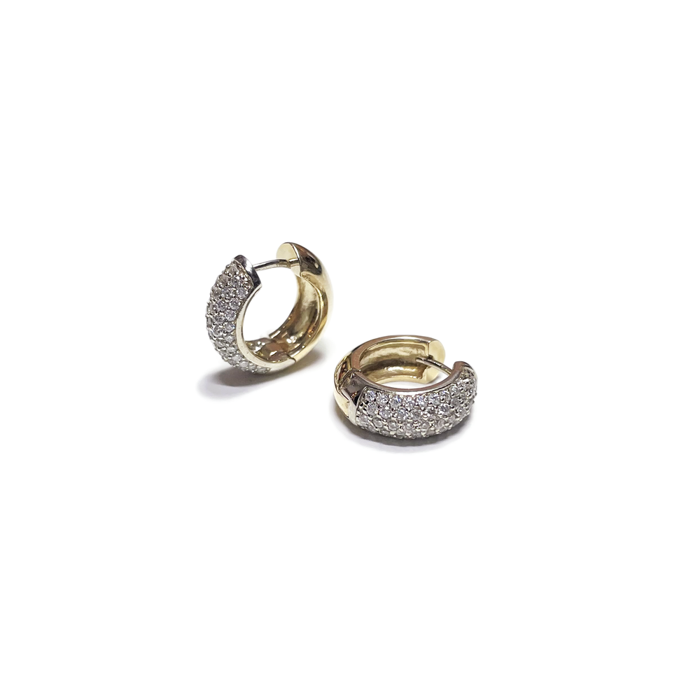 Material : 14K yellow gold and white gold Dimensions : 14.5 * 15mm (approx) Stone : Round white moissanite Stone dimensions : 1.1 / 1.2 / 1.3mm (approx)