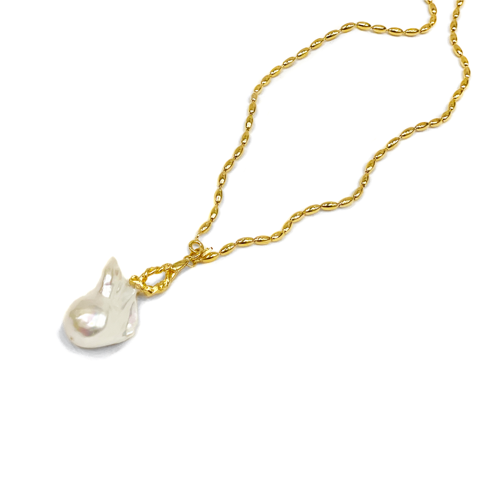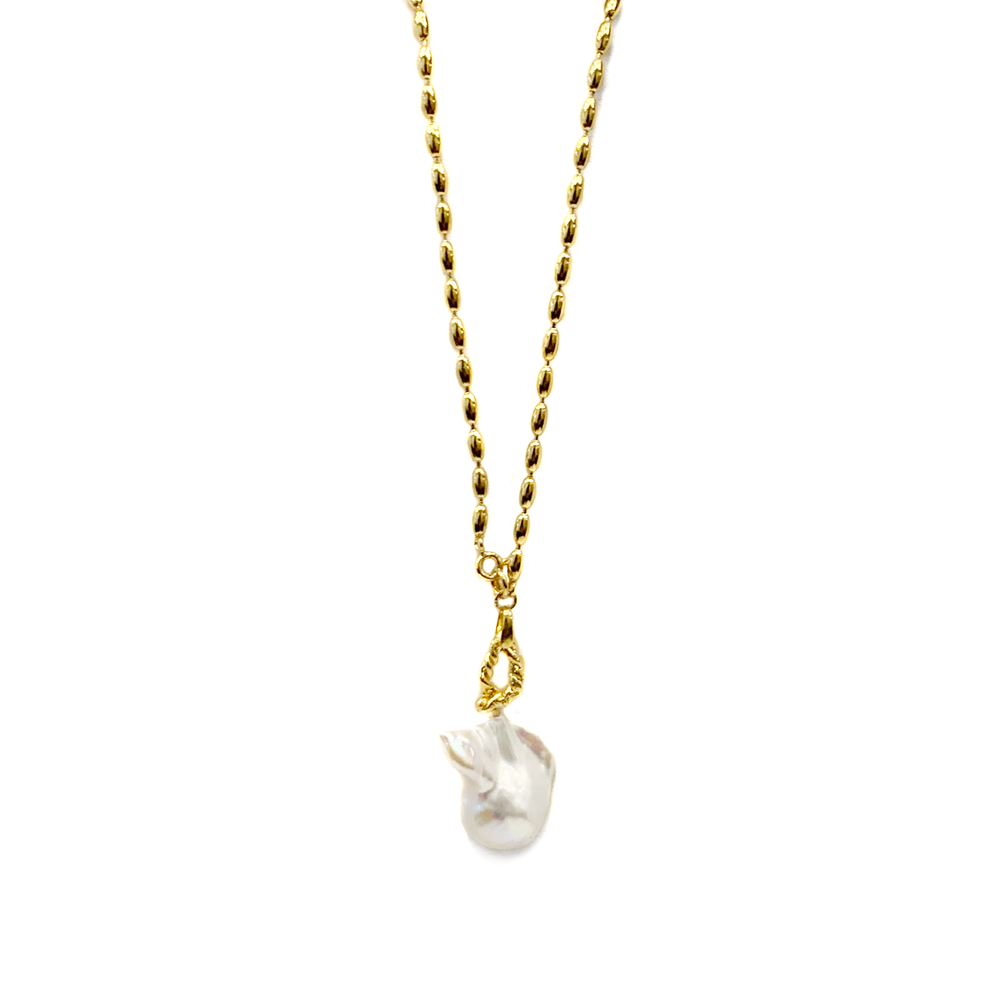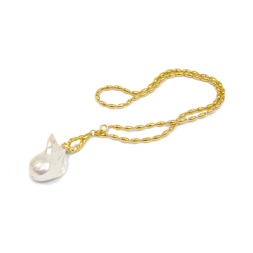 Material : Gold plated 925 Silver Length : 42cm (approx) Stone : Baroque pearl (freshwater pearl) Stone dimensions : 30 * 20mm (approx)