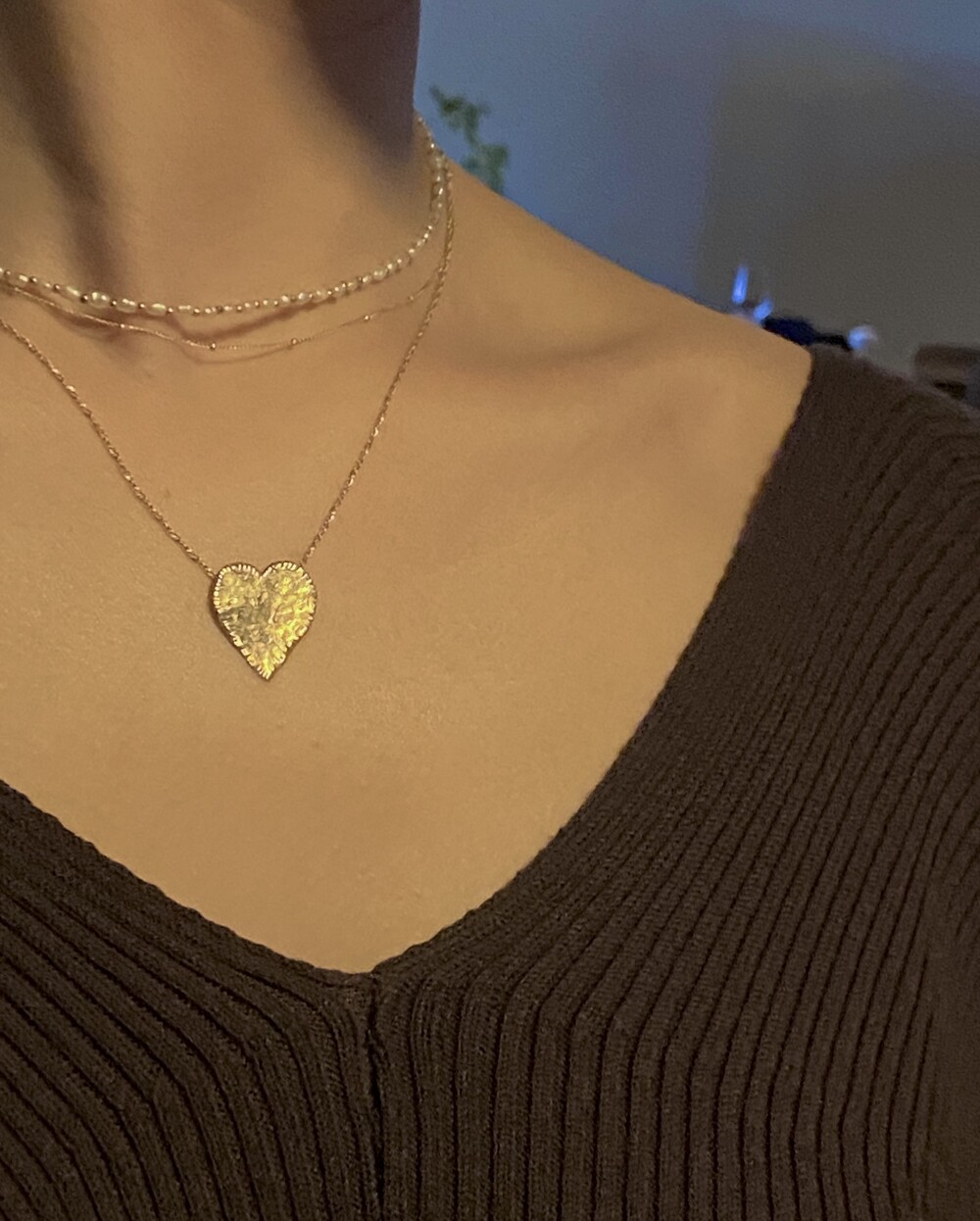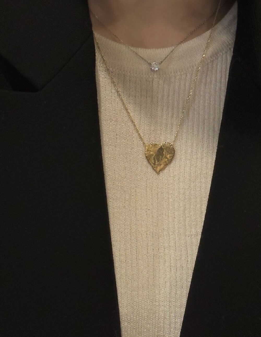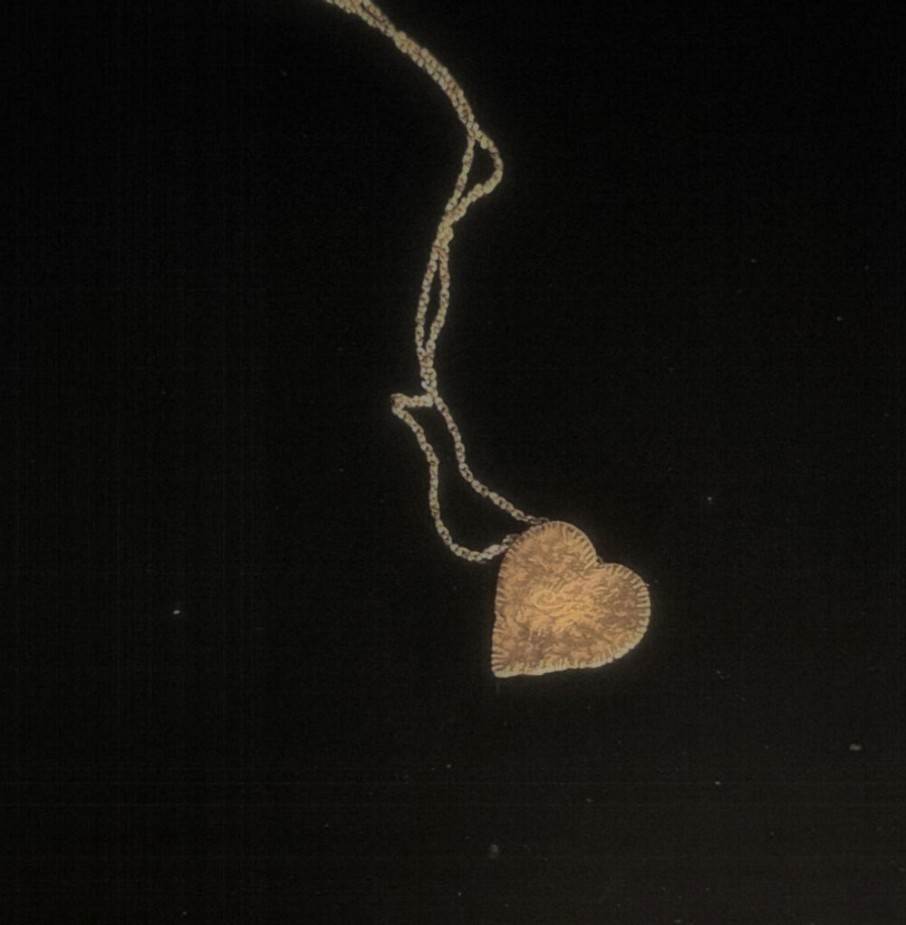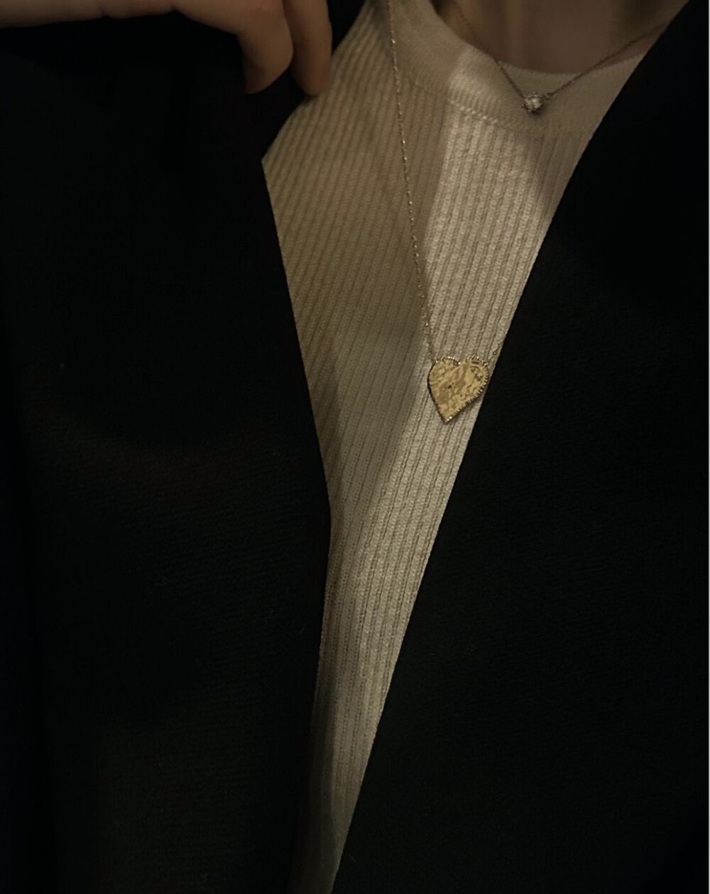 It is a heart pendant that has vintage mood and has a nice hammered texture.