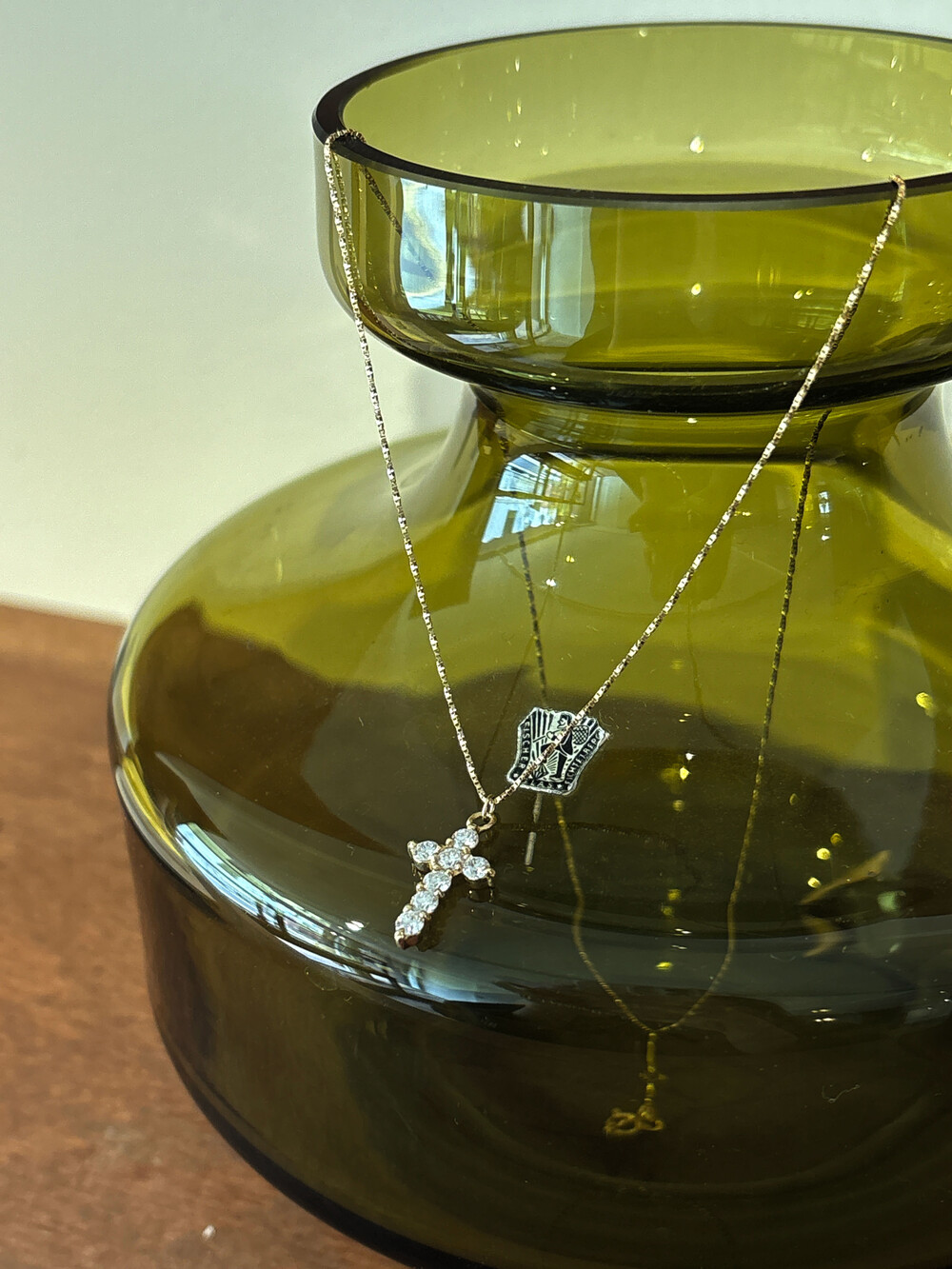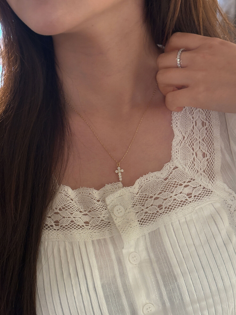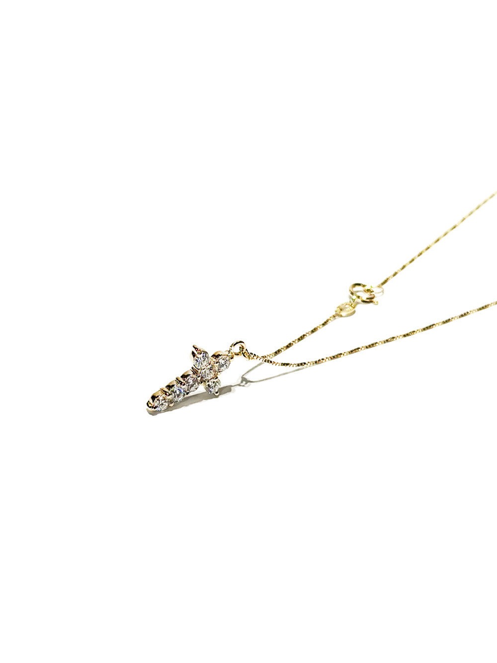 A 14K gold necklace on a fine Italian chain, set with a 2.8 mm lab-grown diamond in a cross design.