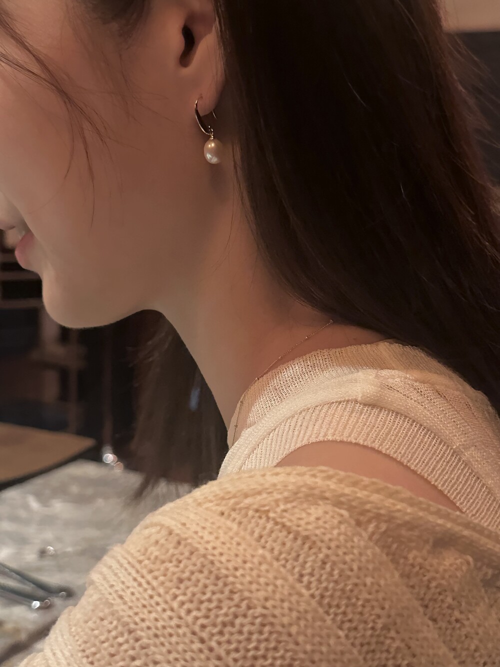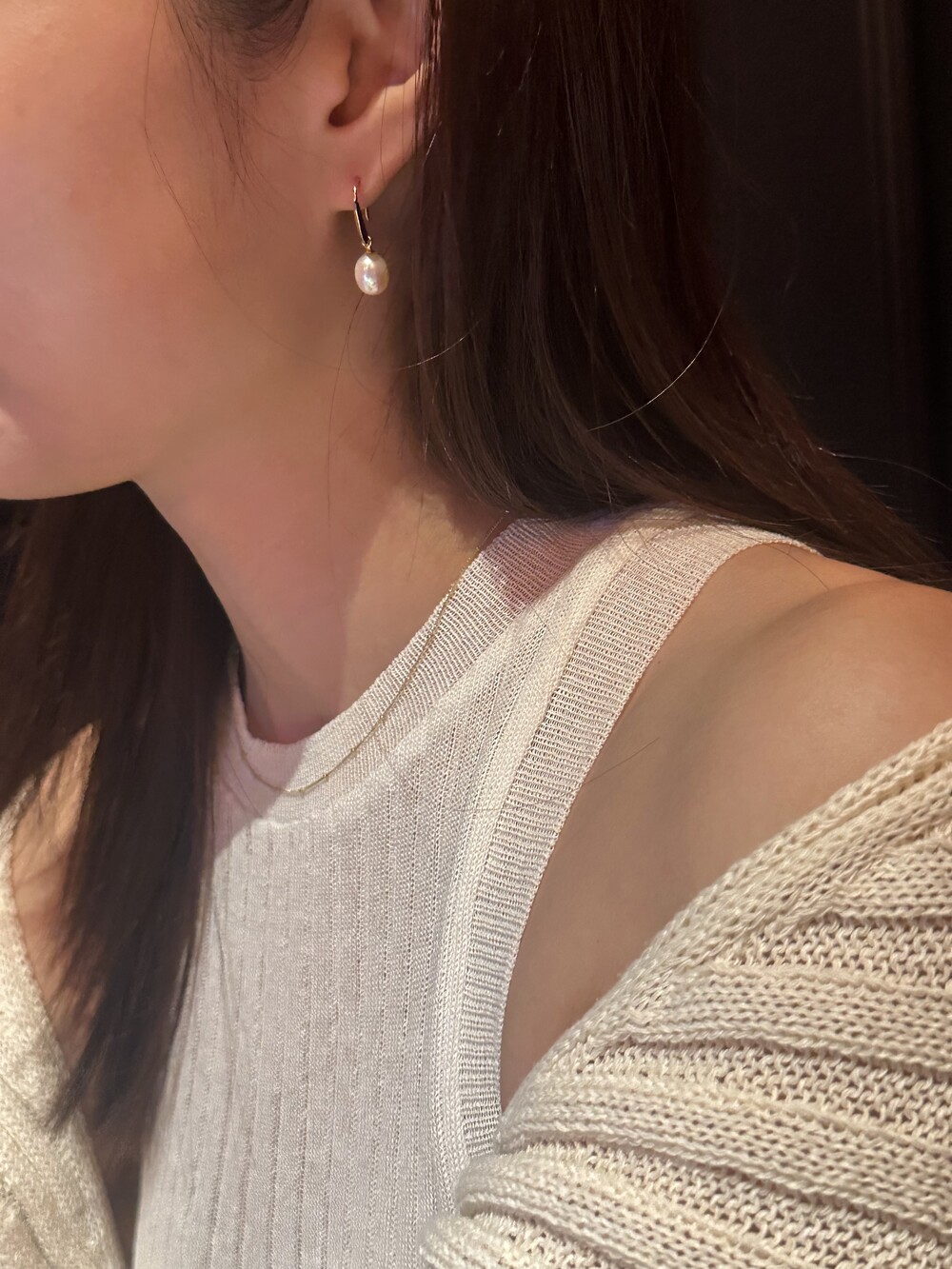 This design features a classic waterdrop-shaped pearl that captures timeless elegance, accentuated by the graceful contour of the post when viewed from the side.