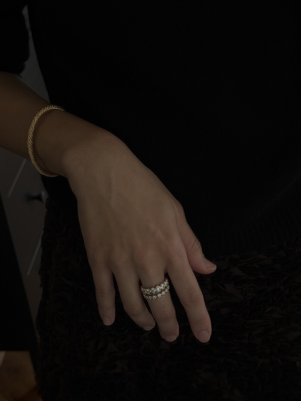 This eternity ring, set with round moissanite, exudes a simple yet classic charm, featuring a clean bezel setting for a luxurious design. The intricate details and delicate finishing work together to offer a radiant beauty that shines even in everyday wear. (price for 1 piece)