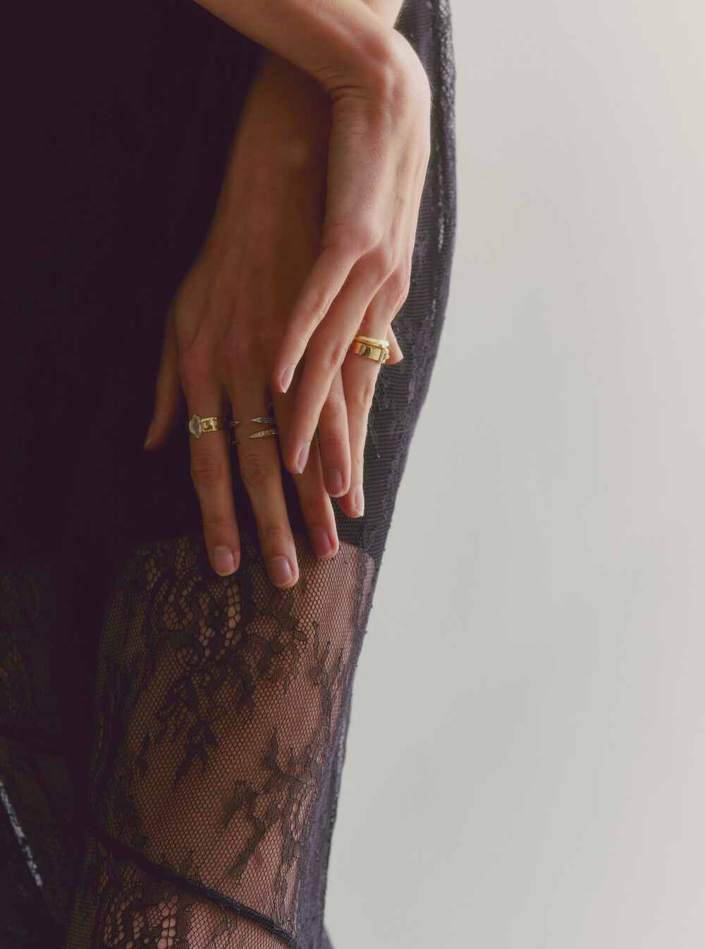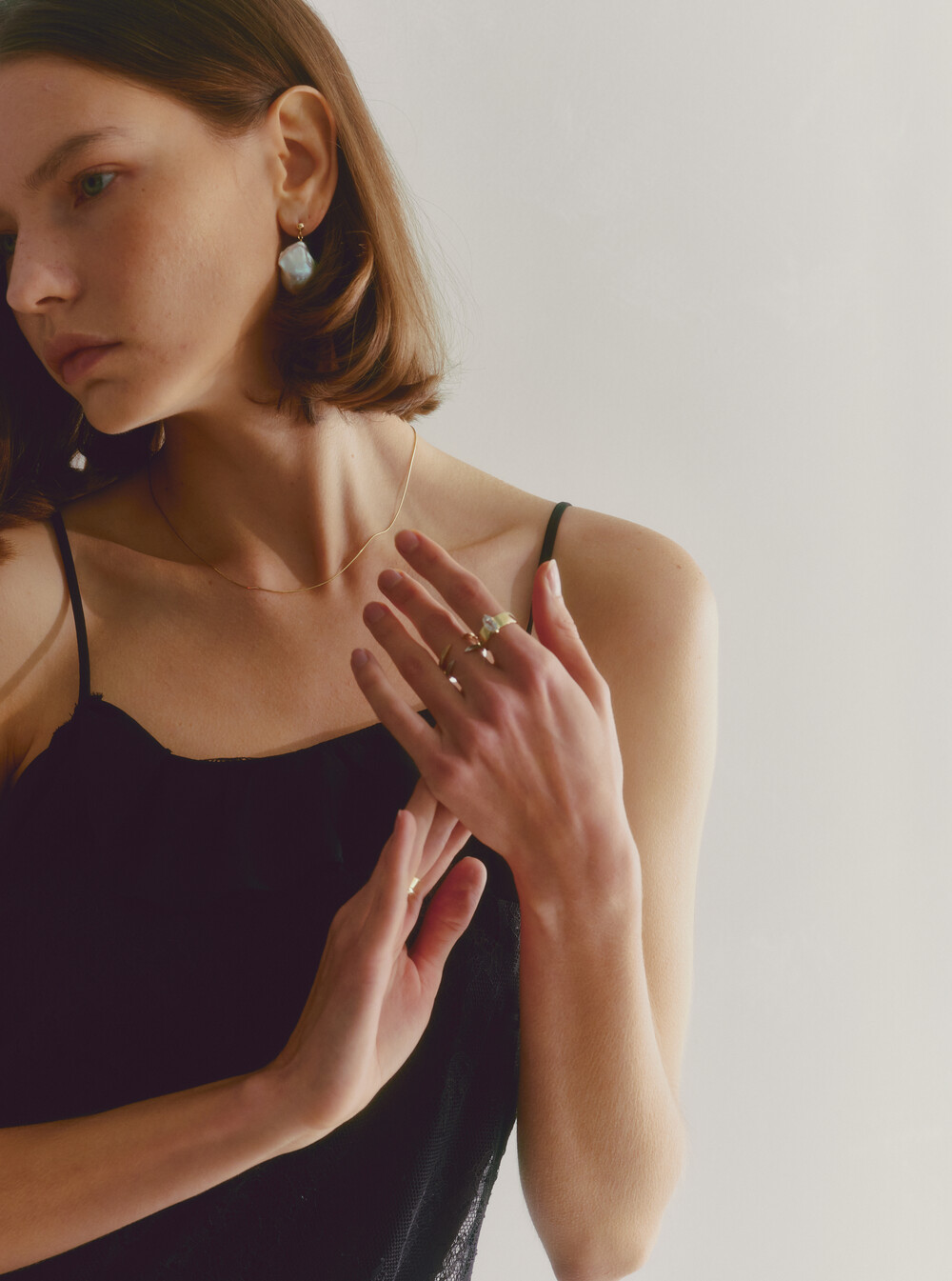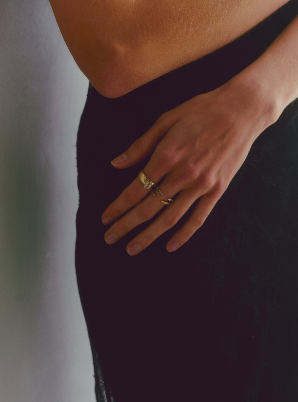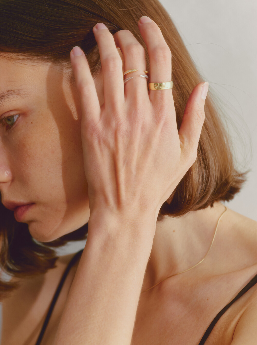 An open band type ring with a diamond setting that stands out with modern and luxurious mood.