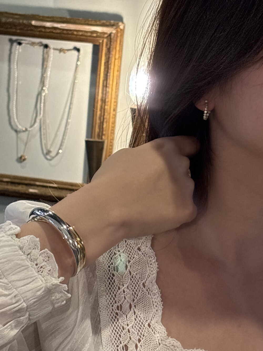Soft, voluminous curves ripple outward like gentle waves, with stones set along the inner surface to catch the light from every angle, enhancing its luminous brilliance with every movement. The design captures the lingering essence of love that flows through generations, held within each curve.