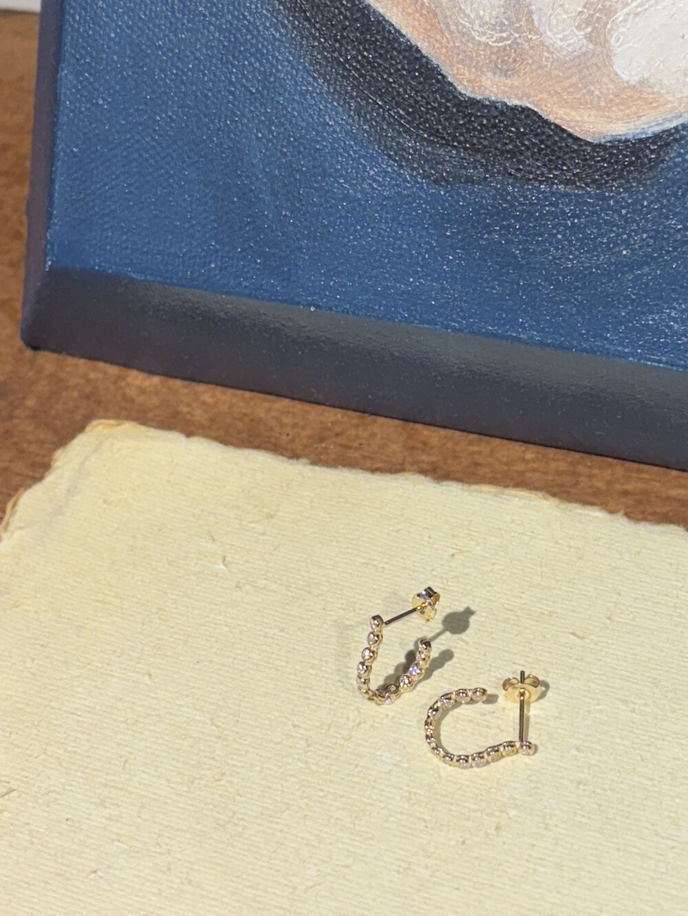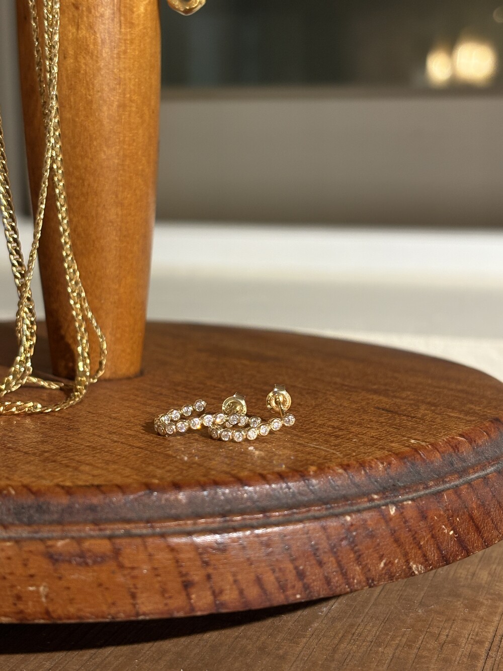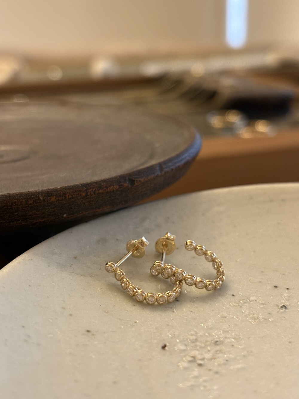 The subtle glow of 14K gold harmonizes with the delicate precision of bezel settings, while its understated scale makes it an effortless yet refined accent for everyday wear.