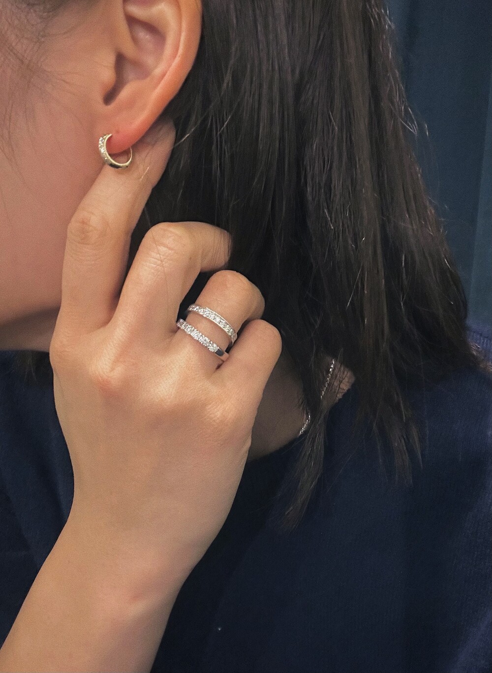 This delicate earring features a small, yet exquisite, Lab-grown diamond set on one side. Highly recommended for daily wear.