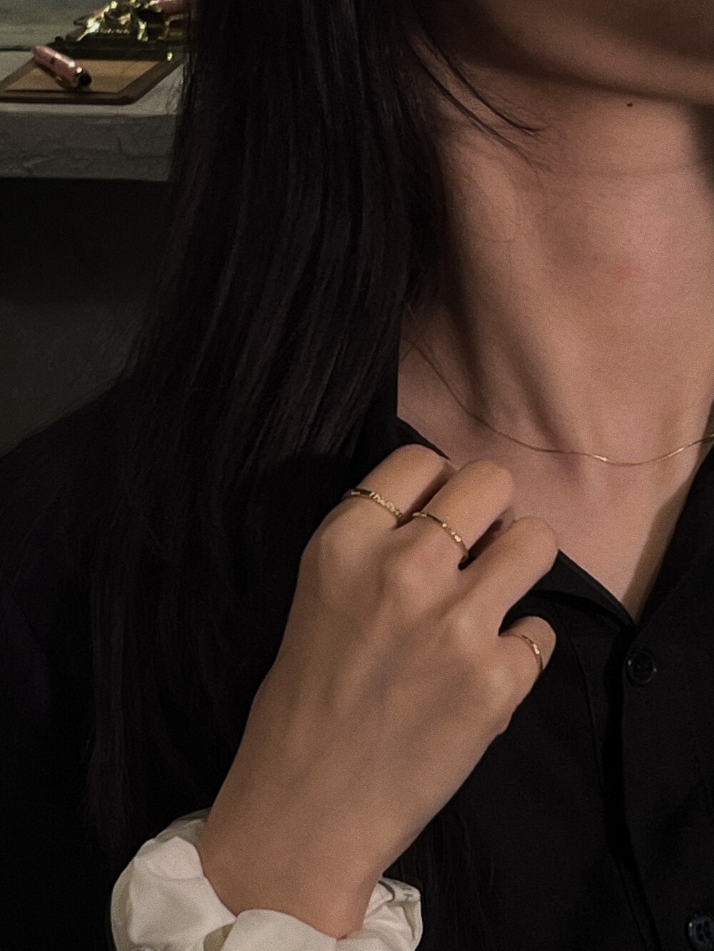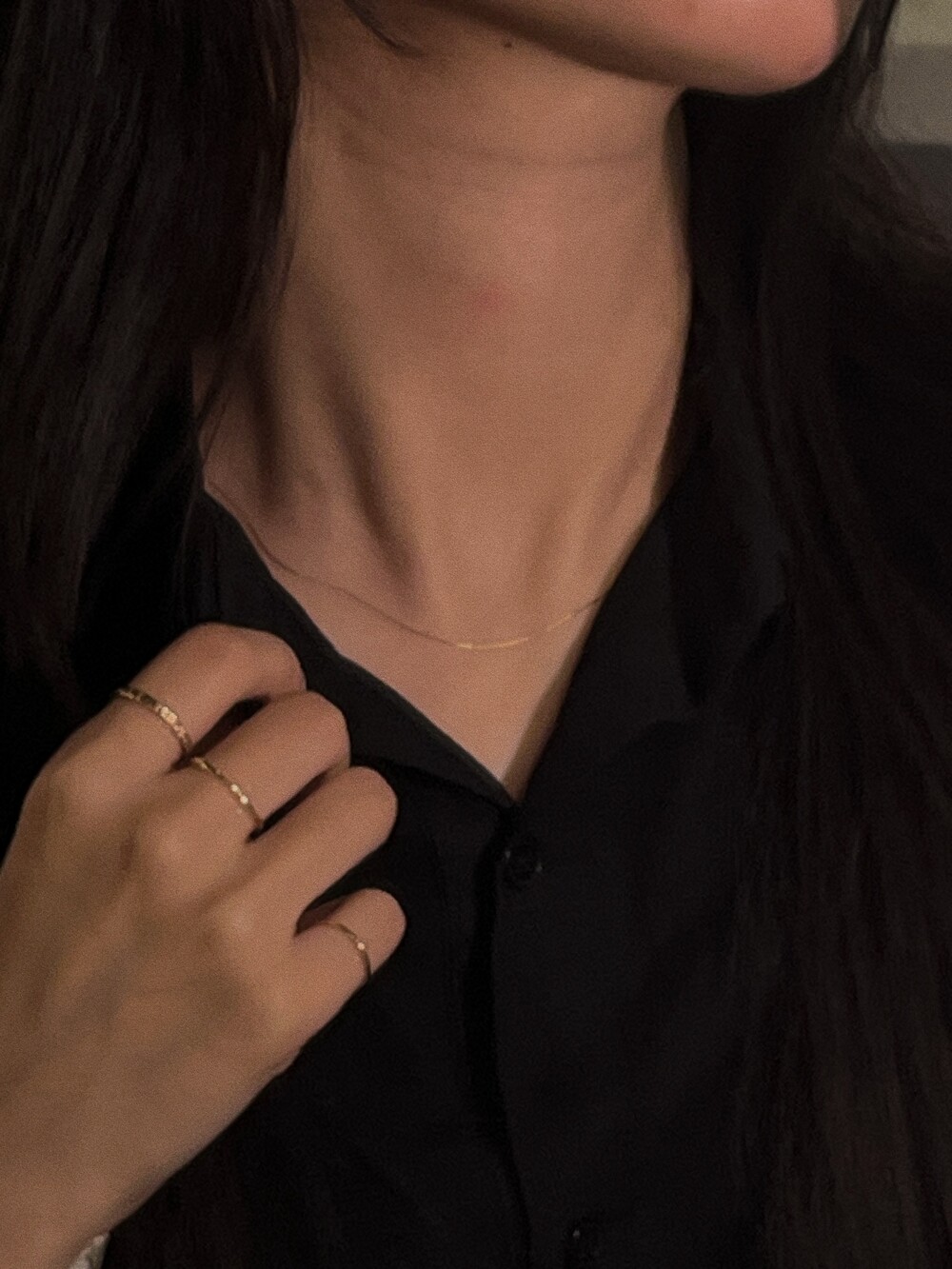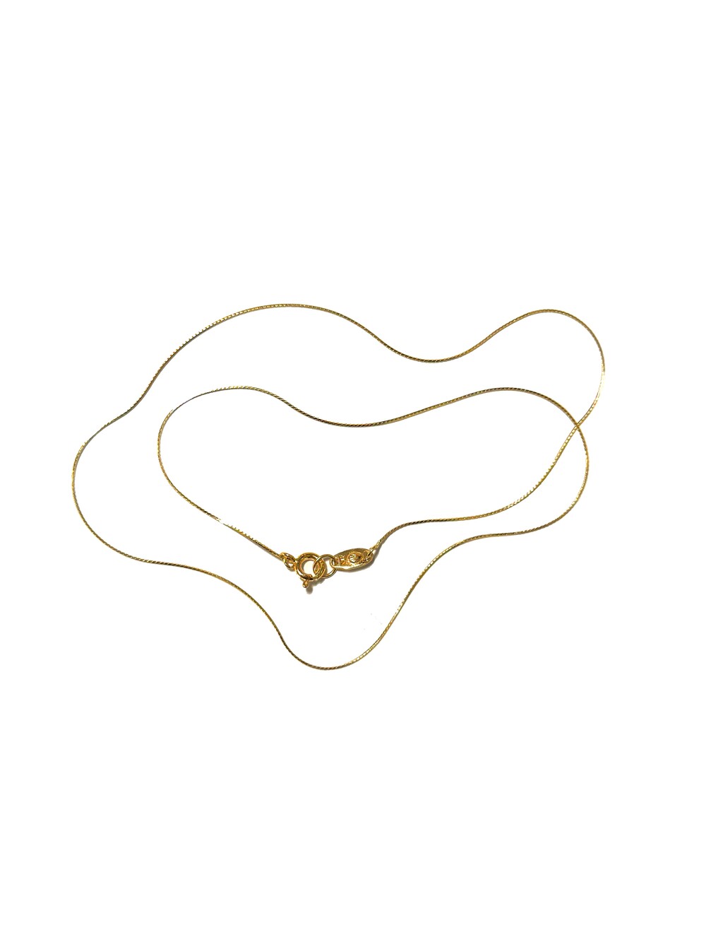 The beauty of pure simplicity. A 14K gold necklace that shimmers softly with the light, completing an elegant and delicate mood. Though slender, its fine chain subtly enhances the neckline with refined grace.