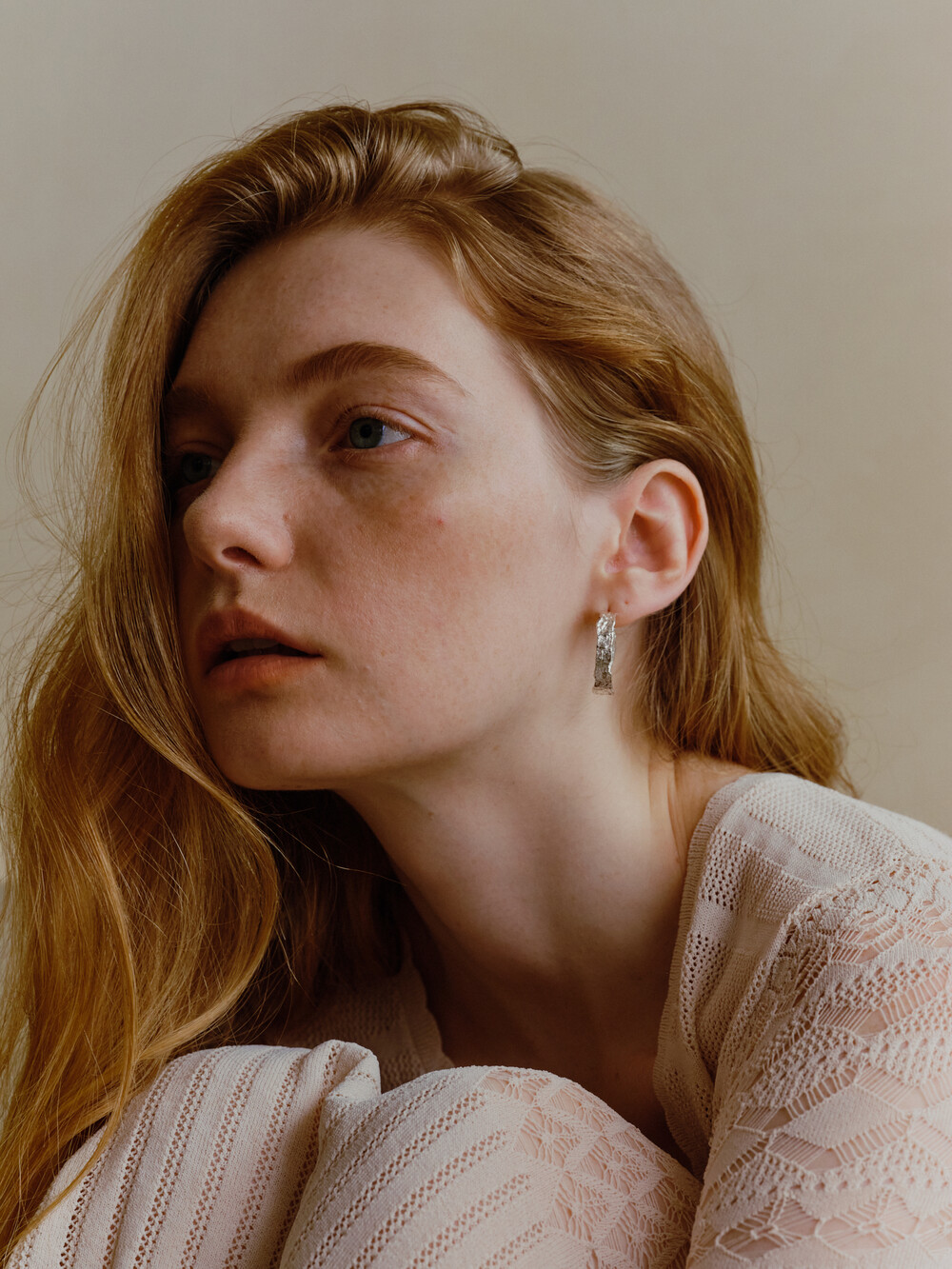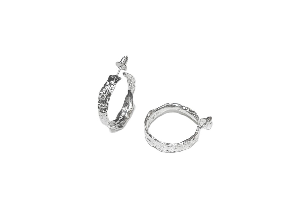 These earrings effectively capture a natural mood with their raw texture reminiscent of wood surfaces.