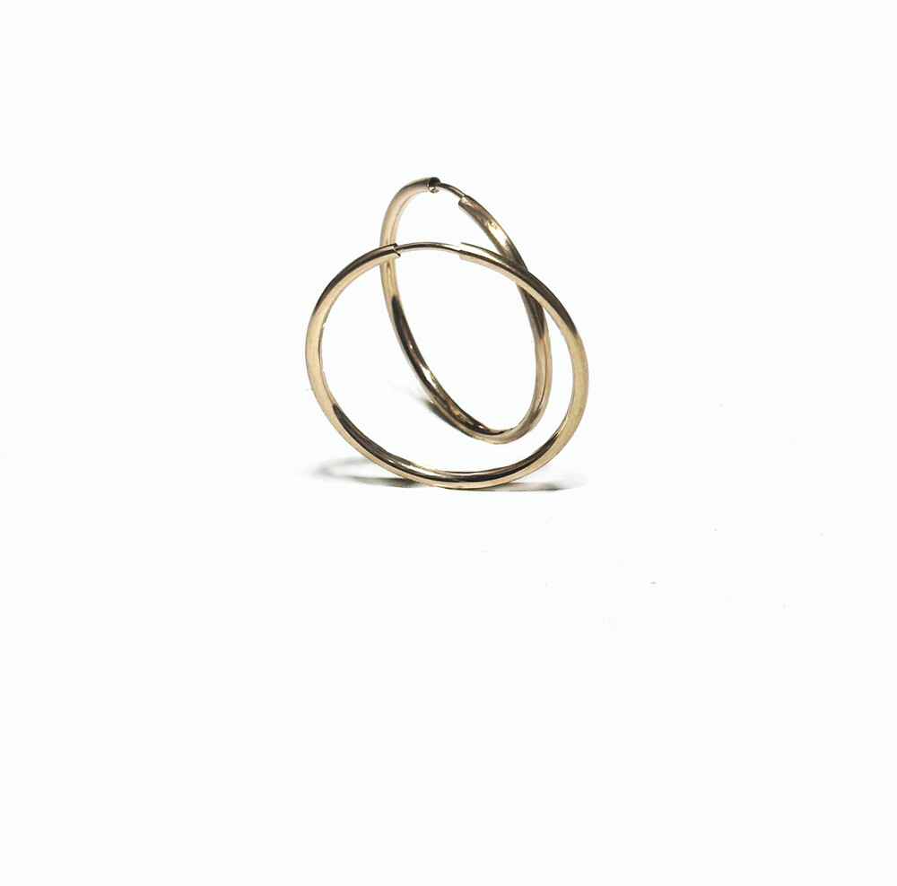 These are classic hoop earrings, a larger version of the Round Hoop earring, designed to make a statement when worn. They are lightweight and have excellent tension, making them ideal for daily wear.