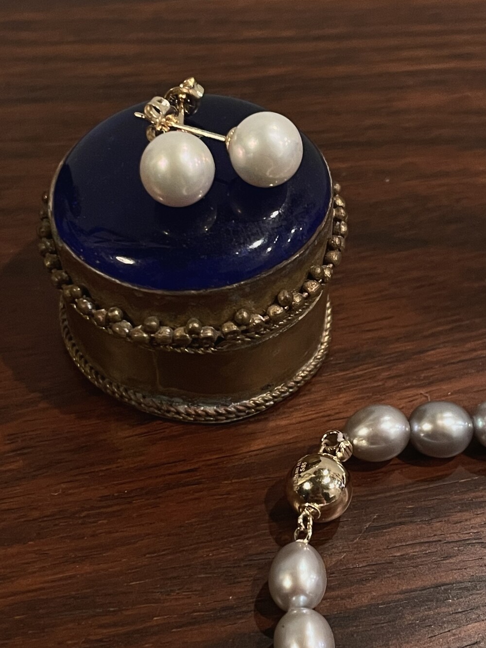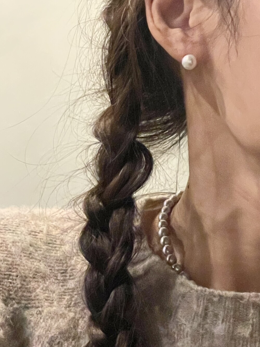 These are classic 8mm pearl earrings. They are made from freshwater pearls carefully selected to be as close to white as possible, minimizing any pinkish hue.