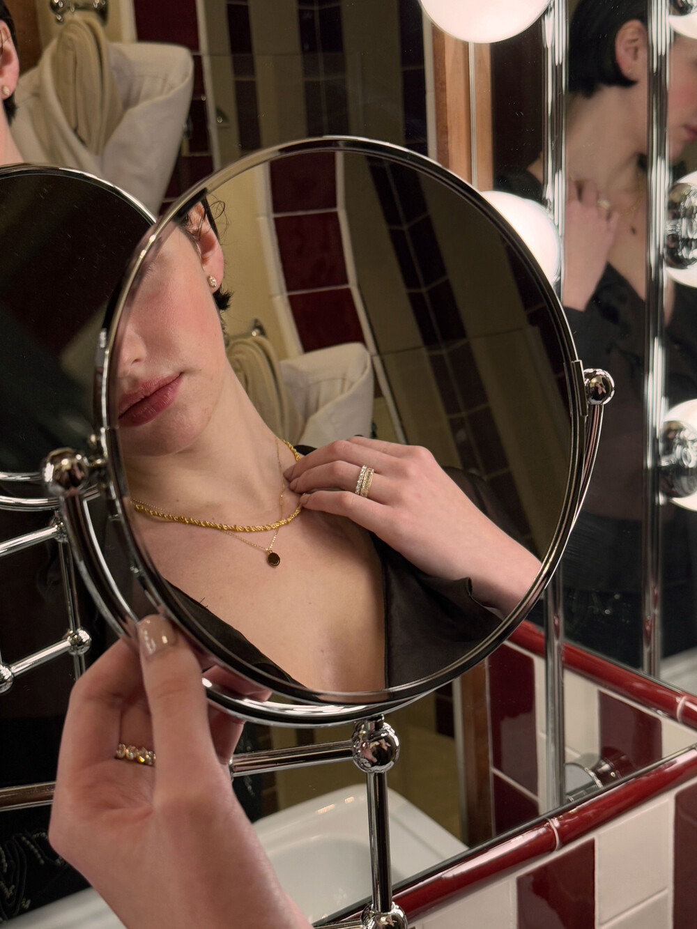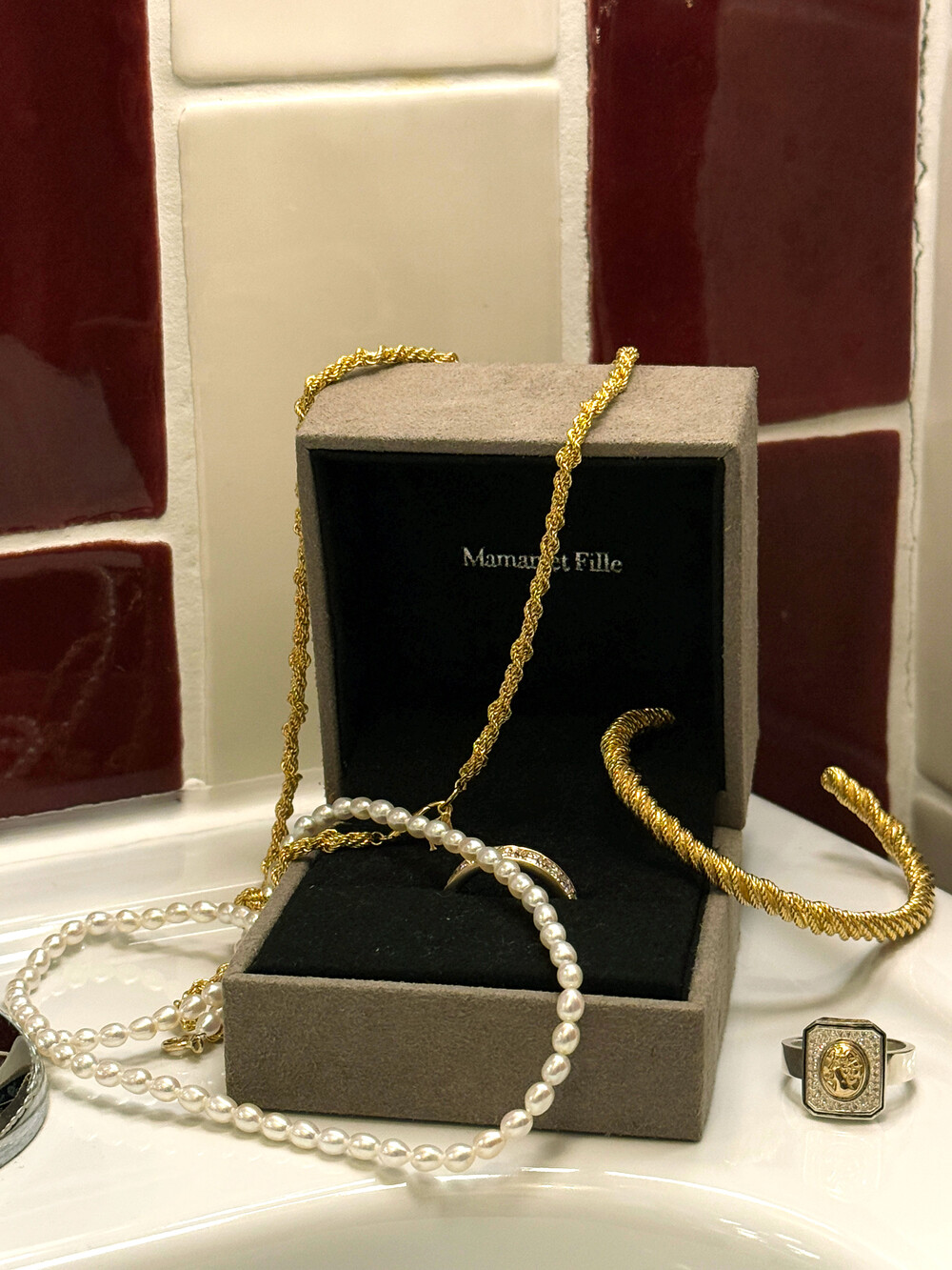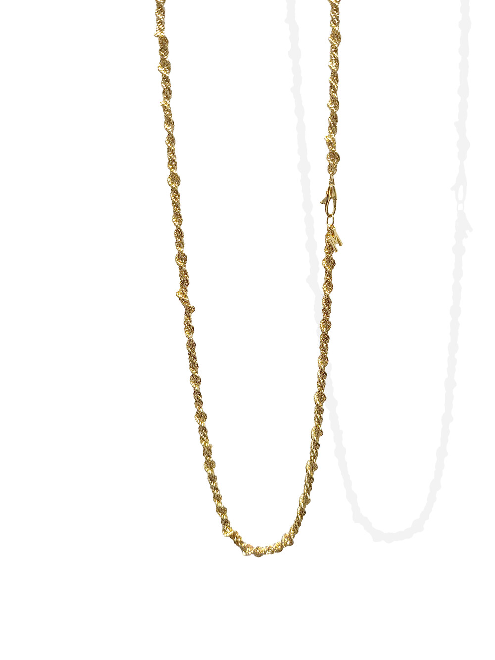 A necklace with a unique design that resembles knotted and twisted ropes, exuding a bold yet flexible beauty. The intricate details and rich volume create a luxurious presence, effortlessly adding an elegant touch to any style.