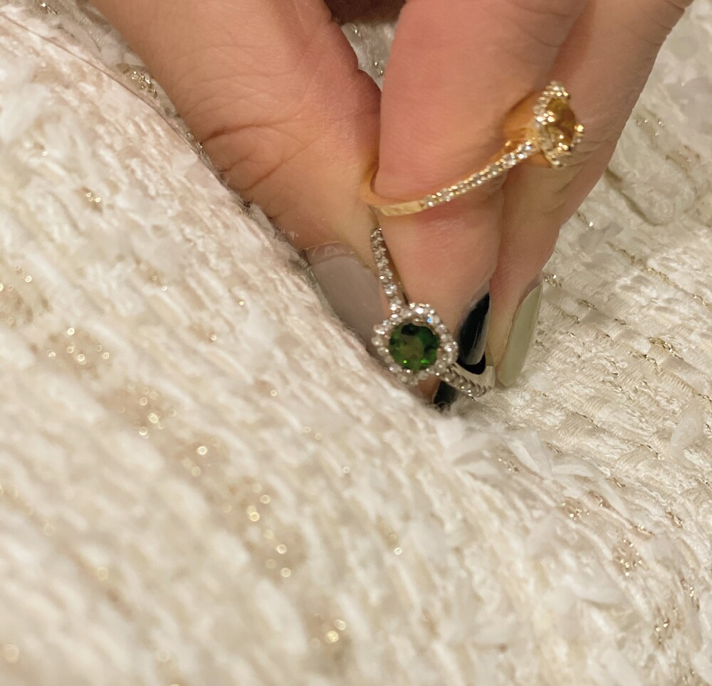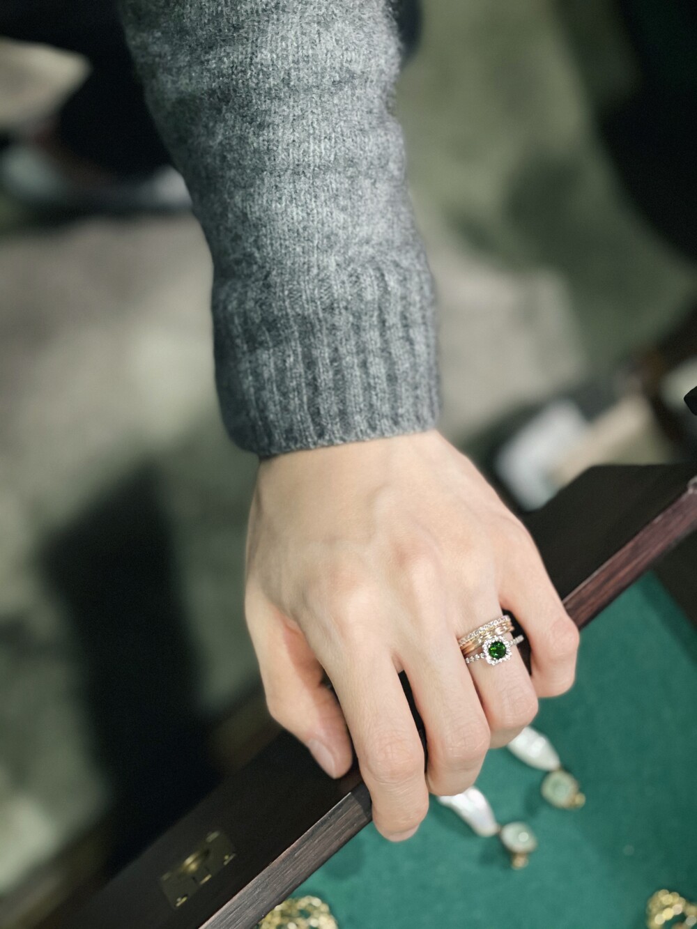 This is an alluring ring that feels like dew in the morning. This 0.5ct size ring has an attractive dark green color.