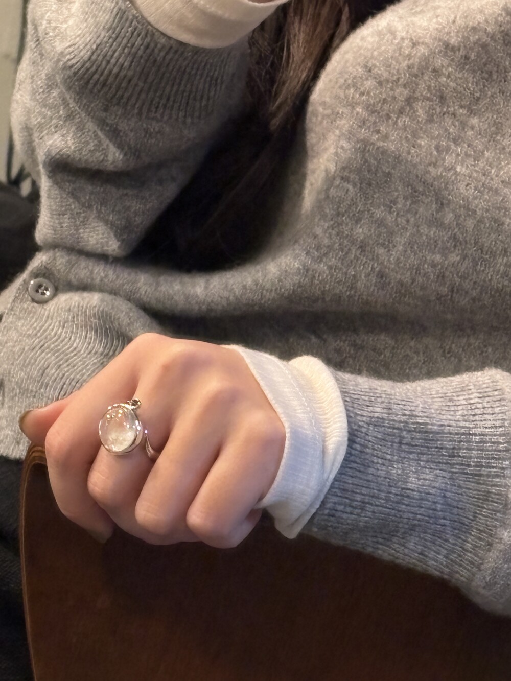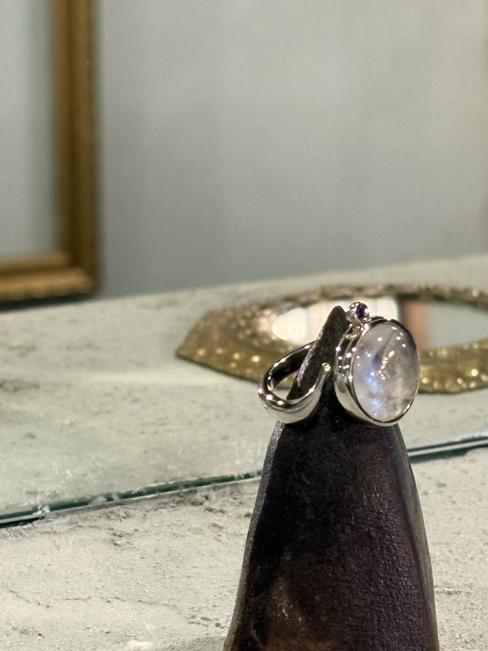 Stone : Cabochon quartz and blue sapphire