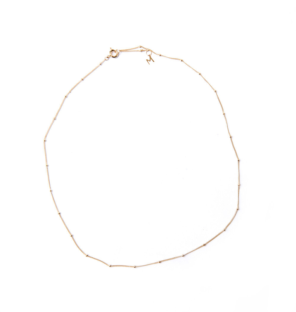 This is a necklace with small ball-shaped chains.
